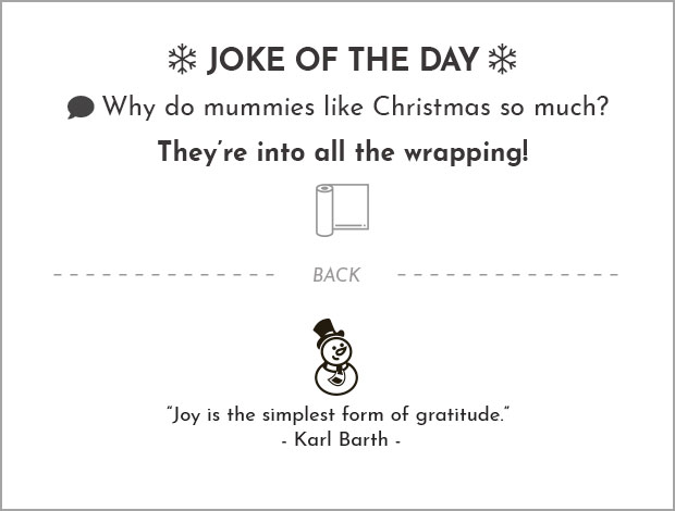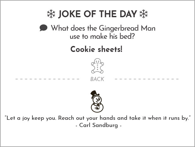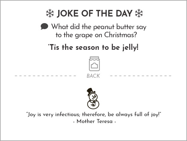 Download the 7 days' worth of holiday-themed joke cards, ready to print, cut and serve with your meals!